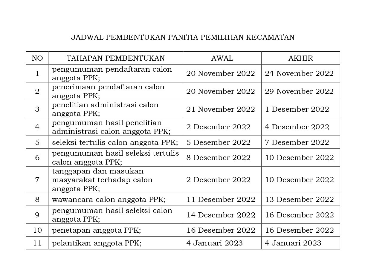 PENGUMUMAN SELEKSI CALON ANGGOTA PANITIA PEMILIHAN KECAMATAN (PPK) PEMILU TAHUN 2024