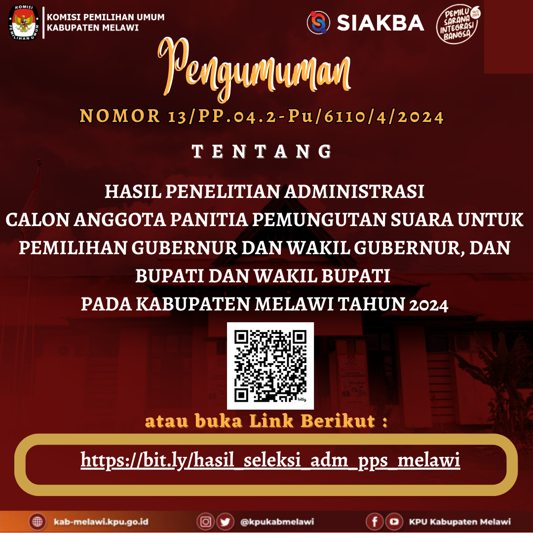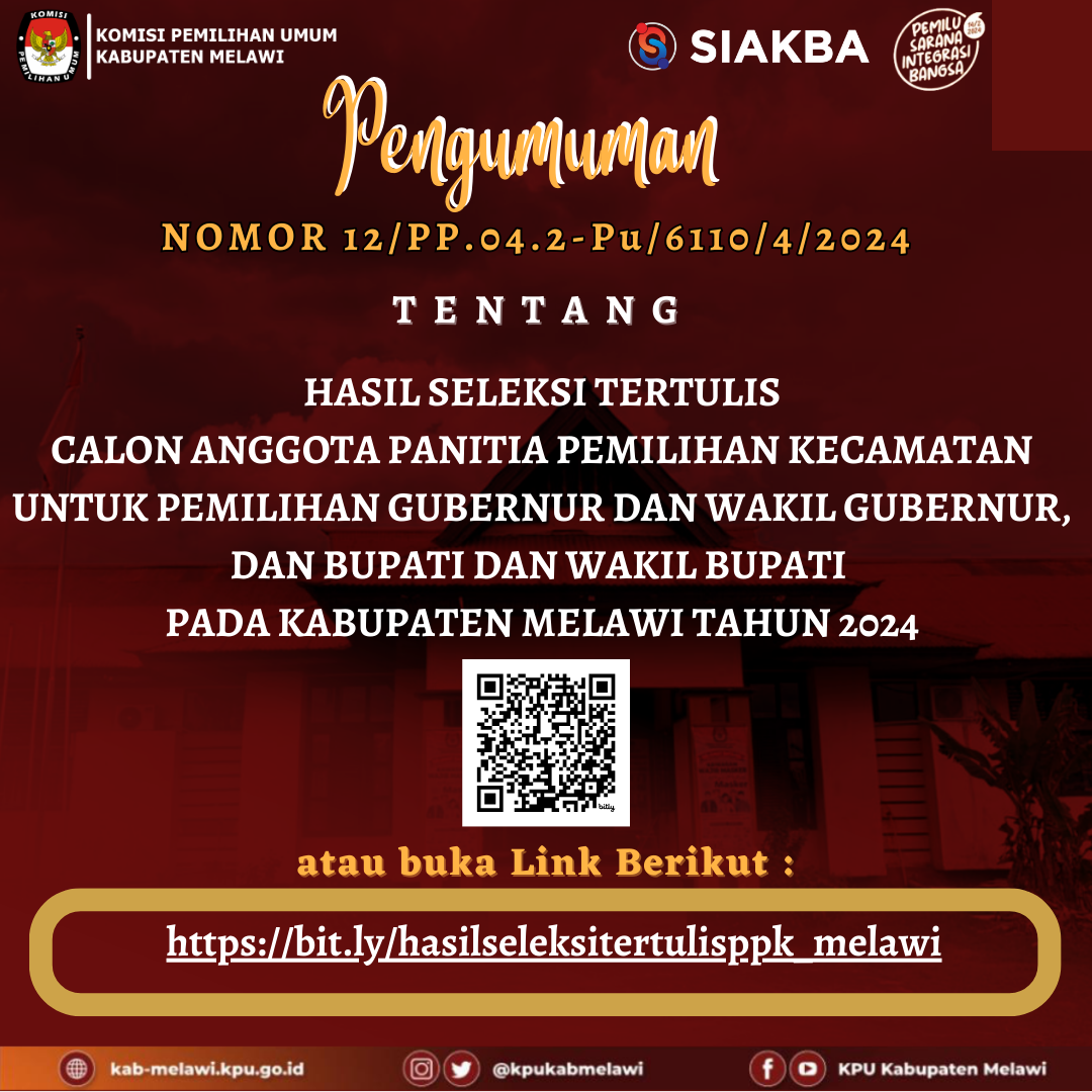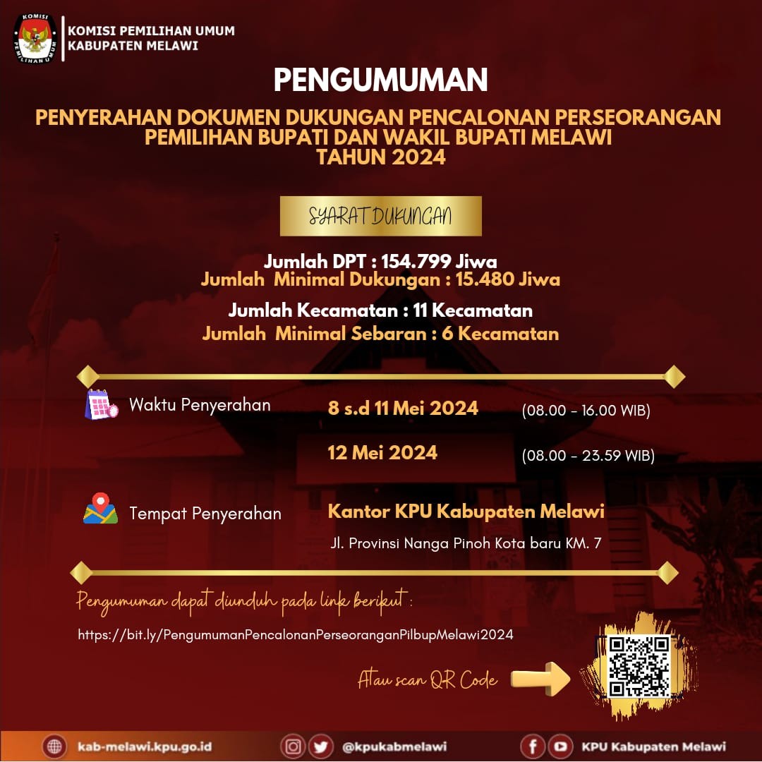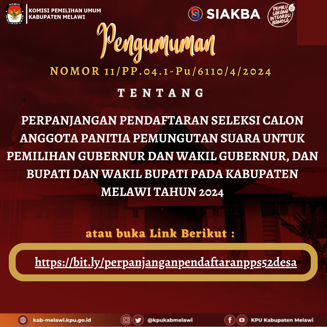 Sehubungan dengan hal tersebut, KPU Kabupaten Melawi membuka perpanjangan waktu pendaftaran seleksi calon anggota PPS sejak tanggal 9 Mei sampai dengan tanggal 11 Mei pada kecamatan/desa sebagai berikut :